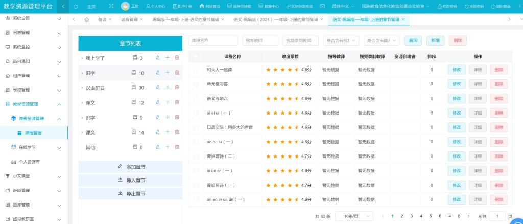 (3)课程资源整合:集中管理与课程相关的课件、视频、文档等资源,关联对应课程和知识点。支持资源上传、更新和共享,师生可便捷获取所需内容,实现课程资源的高效利用与流转。