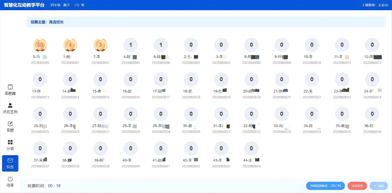 (3)互动教学管理:在互动教学中实现点名签到、实时答题、举手、抢答、投票等功能,记录学生参与情况与反馈。自动收集课堂错题并关联知识点,便于及时讲解纠正,同时根据互动数据调整教学节奏,增强课堂互动效果。